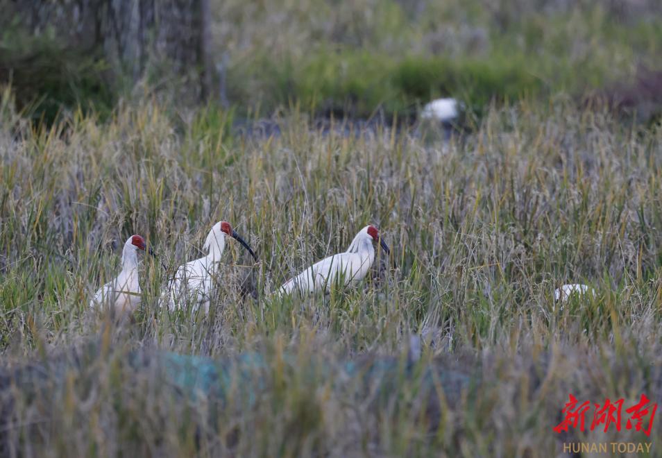 11月28日,新宁崀山朱鹮野化基地,国家一级重点保护野生动物朱鹮在此悠然栖息。作为全球纬度最低的朱鹮野生种群繁育地,南山国家公园候选区自2022年起,分两批在崀山片区野化放归了24只朱鹮。